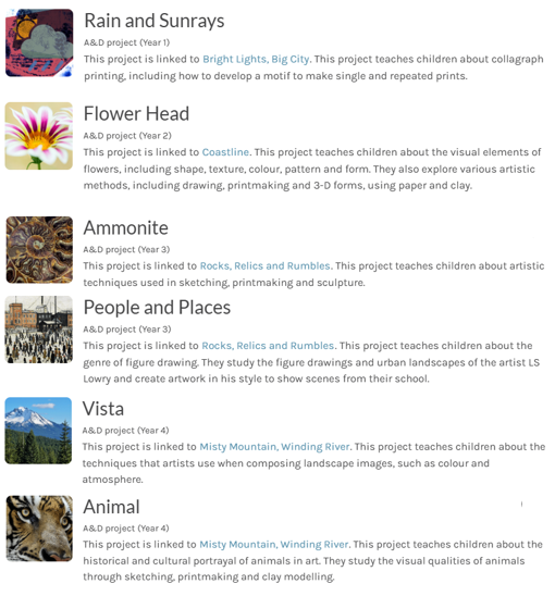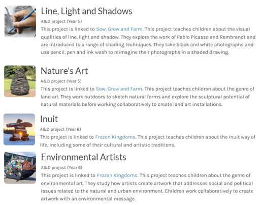 Art and Design – Spring Term projects (Find more detailed Knowledge Organisers on your class Dojo Page)