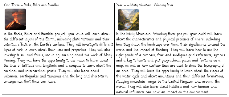 Children develop their knowledge and understanding of the world as they progress through the school and we also aim to instil in our children transferrable skills which a subject like Geography offers.