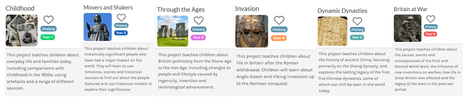 We bring history to life by immersing children in realistic experiences linked to the different topic areas. Through educational visits, both in and out of school, and the use of artefacts, children gain a good understanding of significant events in World and British history as well as appreciating how things change and develop over time.